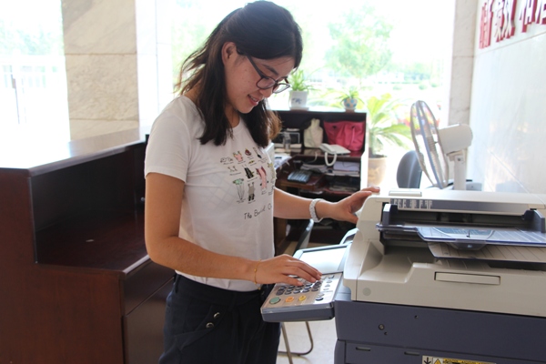 小俞是個熱心腸的人,同事工作忙,她就幫助他們打印需要的資料,還會教同事如何使用打印機和傳真機。小俞樂觀開朗的性格也感染到身邊的每一位同事,然他們在愉快的氣氛中暫時忘掉夏天的炎熱。