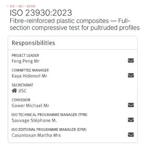 近日,國際標準化組織ISO正式頒布了ISO 23930:2023 《纖維增強塑料復合材料——拉擠型材全截面壓縮試驗方法》(Fibre-reinforced plastic composites — Full-section compressive test for pultruded profiles),這部標準由清華大學土木工程系馮鵬教授提案并擔任項目負責人(Project Leader),是復合材料技術領域首項由我國提案并主導制訂的國際標準項目。