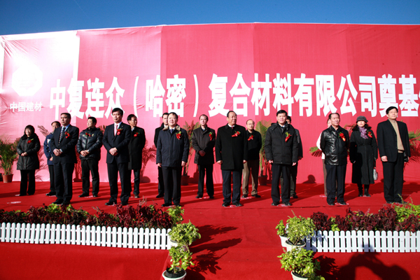 中國建材集團副總經理郭朝民、中國建材報社社長陳才來、中國復合材料集團公司董事長、總經理張定金、哈密地委書記郭連山、哈密地區政協工委主任魏天哲、哈密行署副專員牙森·斯地克等出席奠基儀式。中國復合材料集團公司副總經理、連云港中復連眾集團公司董事長任桂芳主持儀式。