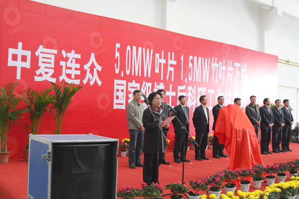 中國建材集團董事長宋志平,連云港市委書記、市人大主任王建華,連云港市政府市長徐一平,中國風能專業委員會秘書長秦海巖,中國建材集團副總經理馬建國,連云港市委常委張光東、唐國海、副市長施炎,江蘇省人力資源和社會保障廳專家和國際合作處處長金凡,中國復合材料集團有限公司董事長、總經理張定金出席慶典儀式。中國復合材料集團有限公司副總經理、中復連眾董事長任桂芳主持儀式。