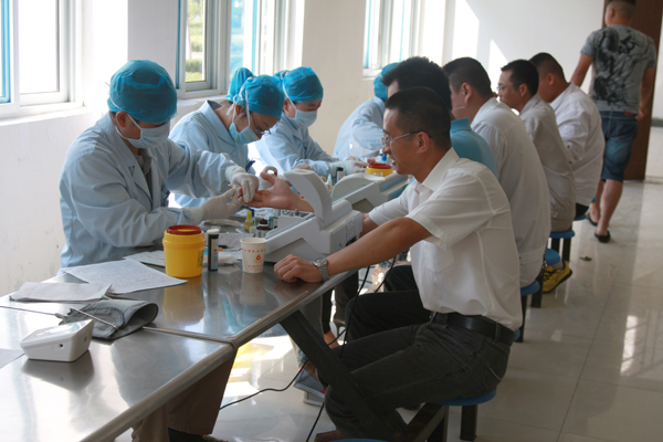 在獻血現場,大家填寫表格、測量血壓、驗血、抽血,有條不紊,員工們排起長長的隊伍。隊伍中有公司高管、中層管理人員,也有來自基層的生產工人;有剛剛參加工作的大學生,也有工作了二十幾年的老黨員們;有第一次鼓起勇氣獻血的,也有多次獻血的……管道車間楊澤平經理第一個登上了采血車,勇敢地伸出來胳膊,這是他第一次獻血—300cc;一位新員工說,作為社會新鮮人,這是一堂重要的社會課,他們要從這一刻起,要學會奉獻社會、承擔責任。