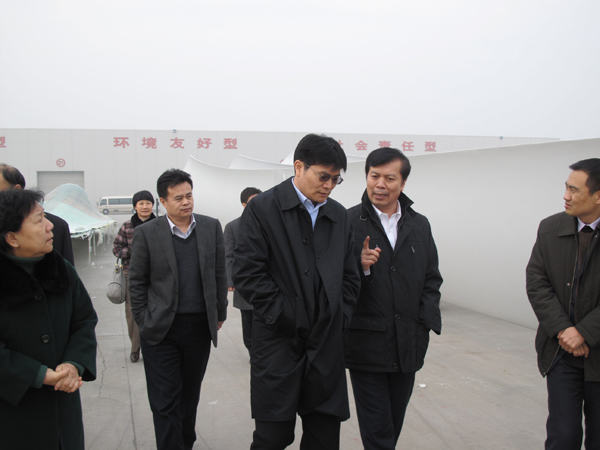 12月21日,華銳風電科技有限公司董事長、總裁韓俊良來到連云港中復連眾,考察了國內首個風機葉片室內全尺寸結構試驗室和6MW葉片生產車間。中國復材董事長張定金、中復連眾董事長任桂芳陪同考察。