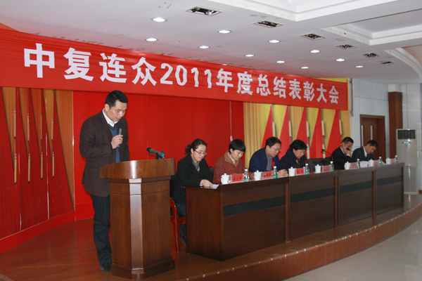 玉兔呈祥辭舊歲,金龍獻瑞迎新春。1月20日,中復連眾隆重舉行2011年度總結表彰大會??偨浝韱坦廨x作年度工作報告,董事長任桂芳在會上作重要講話,公司所有管理人員、車間班組長以上人員參加了會議。會議由副總經理南洋主持。