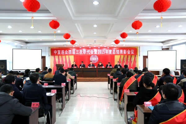 吉羊逐云辭舊歲,金猴獻瑞喜迎新。1月28日,中復連眾召開四屆三次職代會暨2015年度總結表彰大會。會議傳達了中國建材集團、中國復材集團2016年工作會議精神,表彰先進、交流經驗,回顧總結了公司2015年經營管理和工會工作,部署安排了2016年各項任務??偨浝韱坦廨x作了題為《凝心聚力 共克時艱 推動公司質量效益再上新臺階》的年度工作報告。本次會議采取職代會與總結表彰大會“套開”形式舉行,提高了會議效率,實現節儉辦會。職工代表、中層以上管理人員、部門代表共計140余人出席會議。會議由副總經理南洋主持。