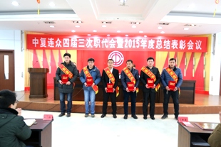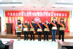 會議還隆重表彰了中復連眾2015年度10個先進集體、2名標兵和76名先進個人,表彰了“超大口徑純玻璃鋼管道鎖緊接頭的研發”、“輥涂工藝實施”等34項科學技術獎。