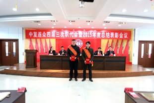 副總經理、工會主席王彤兵作了題為《凝心聚力 服務發展 努力開創中復連眾工會工作新局面》的工會工作報告?;仡櫩偨Y了2015年在推進民主管理、建設職工隊伍、弘揚勞模精神、構建勞動安全保障機制、展現職工精神風貌、職工幫扶體系建設等方面取得的成效,深刻剖析了存在的不足,并就2016年工會工作布置了四個方面的工作:一是進一步組織動員職工,在融入中心工作上下功夫;二是進一步教育引導職工,在堅定理想信念上下功夫;三是進一步聯系服務職工,在推進民主管理上下功夫;四是進一步履行職責,在加強工會自身建設上下功夫。