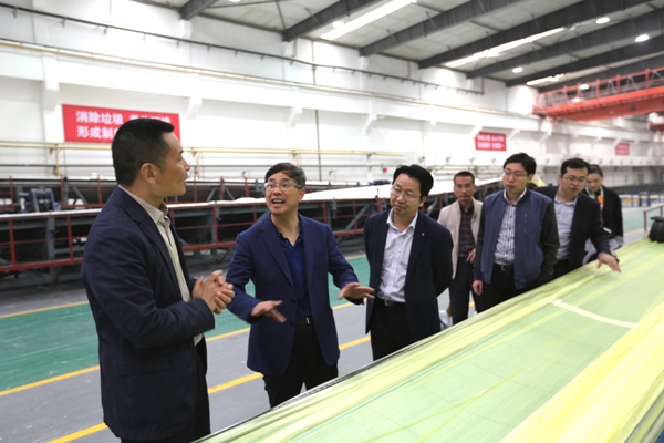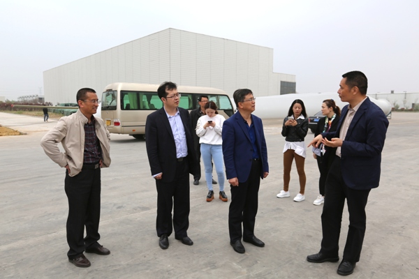 4月12日,國務院國資委經濟研究中心副主任彭建國一行到中復連眾連云港葉片工廠考察,實地參觀12兆瓦試驗臺和葉片生產線。中復連眾總經理喬光輝向彭建國一行詳細介紹了風機葉片項目概況、生產流程和生產工藝等情況。