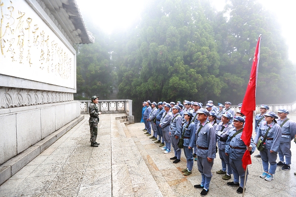 在 “全面從嚴治黨的新部署——十八屆六中全會精神解讀” 專題教育中,學員們深入學習了習總書記全面從嚴治黨的背景、總體部署、特點和意義,理論水平得到了較大提高。在小井紅軍醫院、小井烈士墓大井朱毛舊居、八角樓、黃洋界等地現場教學中,學員們學習了“艱苦奮斗攻難關”、“信仰比生命更貴重”、“堅持學習勇探索”、“實事求是闖新路”、“依靠群眾求勝利”等主題。在 “祭奠井岡英烈”儀式教育中,學員們懷著崇敬的心情,為死難烈士默哀,重溫入黨誓詞,并向井岡山革命烈士陵園敬獻花圈、挽聯,深刻感受革命志士的大無畏奉獻精神和愛國情懷。在“紅軍的一天”體驗式教學中,學員們身著紅軍服,頭戴八角帽,肩扛紅軍槍,進行了3.5公里的急行軍,大家克服困難,團結協作,順利完成采集草藥、入戶調查、自做午餐等項目,切身體驗到了革命歲月的艱辛。