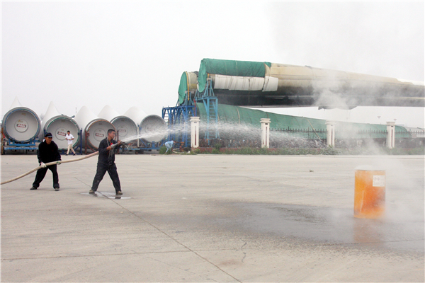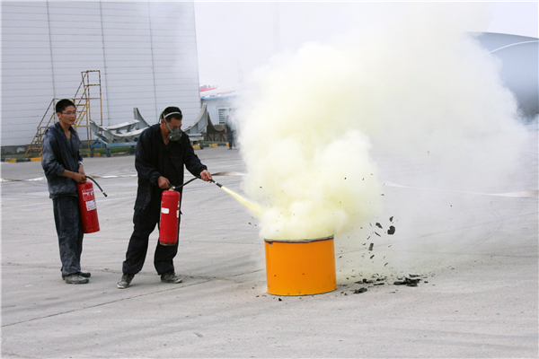 此次參加消防安全演練的主要是工作在葉片貨場上的人員,包括鋪層維修工段、機加工成品工段,共30人。如果有火災發生,他們能夠第一時間發現火情。演練開始前,由安全員對參加演練的員工就火災現場的應急處置方案、滅火器的正確使用、滅火位置以及逃生等進行詳細講解。