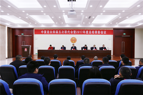 2018年2月10日,中復連眾四屆五次職工代表大會暨2017年度總結表彰大會在連云港本部召開。公司黨委書記、總經理喬光輝作題為《堅定信心 協同共贏 為實現企業高質量發展而不懈努力》的工作報告,黨委副書記、副總經理、工會主席王彤兵作題為《堅守初心 創新服務 提升思想高度 情感溫度 執行力度》的工會工作報告。公司職工代表、中層干部、管理人員、班組長、獲獎代表共260余人參加會議,外地公司通過視頻系統在分會場同步參會。會議由副總經理南洋主持。