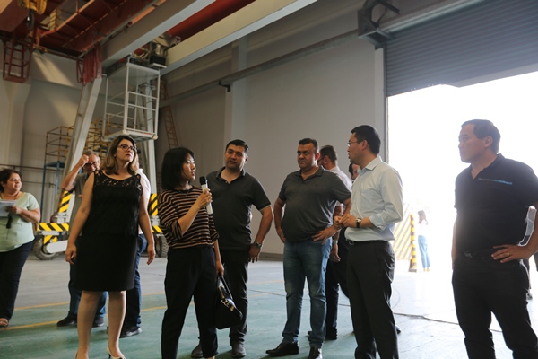 6月11日下午,在巴西中國商會葉康妙會長的陪同下,羅德里戈·阿什烏奇率領的巴西圣保羅州代表團一行來到中復連眾連云港葉片基地參觀考察,中復連眾副總經理梁穎熱情接待了代表團一行。