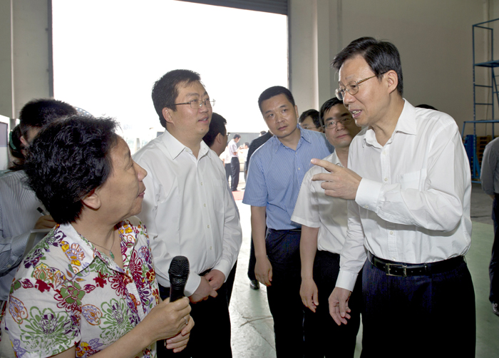 6月7日上午,在連云港市市長楊省世,市委常委、連云港經濟技術開發區黨工委書記關永健的陪同下,江蘇省省長李學勇冒雨前往中復連眾,視察中復連眾科技創新情況。中國復材集團副總經理、中復連眾董事長任桂芳,中復連眾總經理喬光輝向李學勇省長做了匯報。