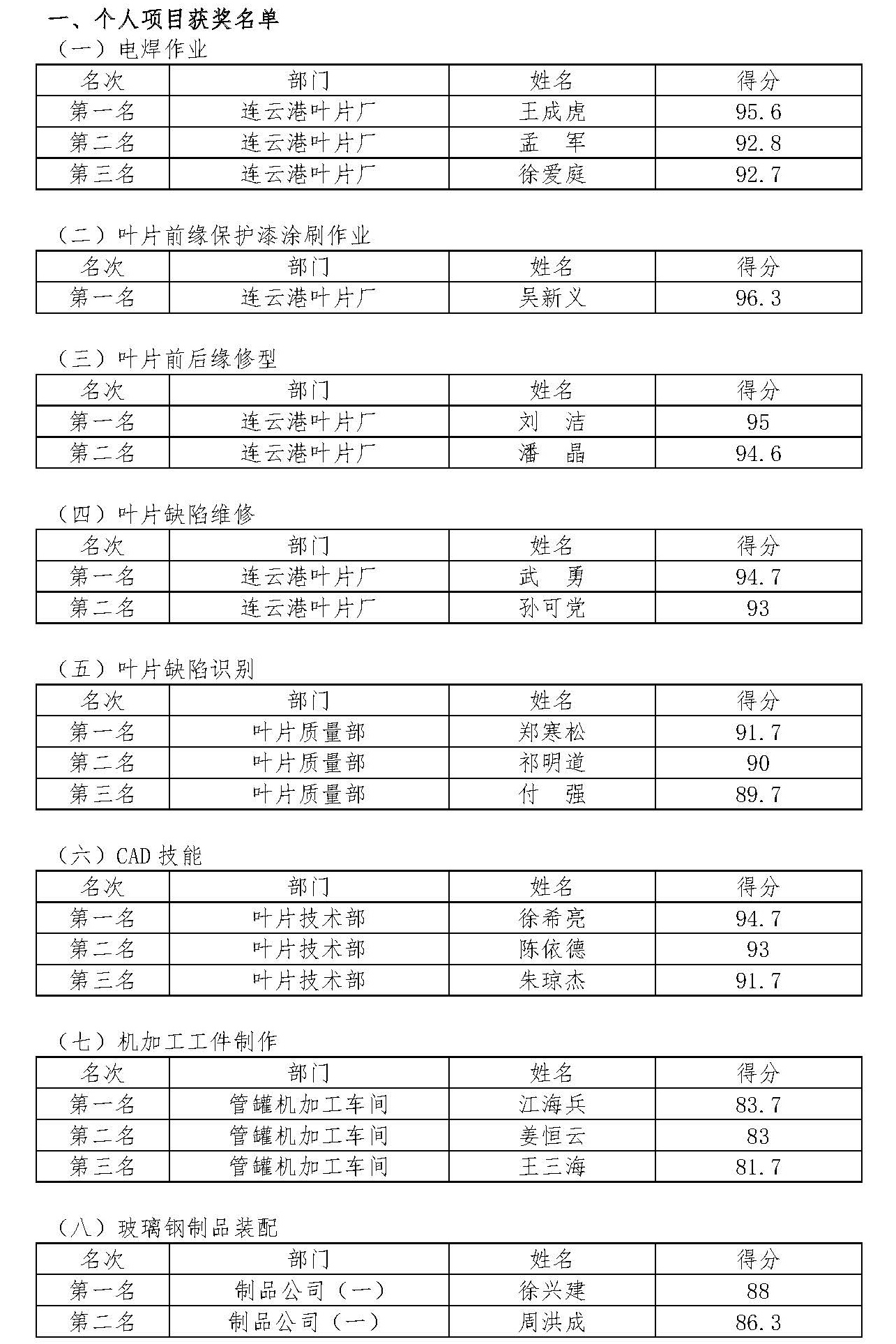 附:2022年中復連眾員工技能競賽獲獎名單